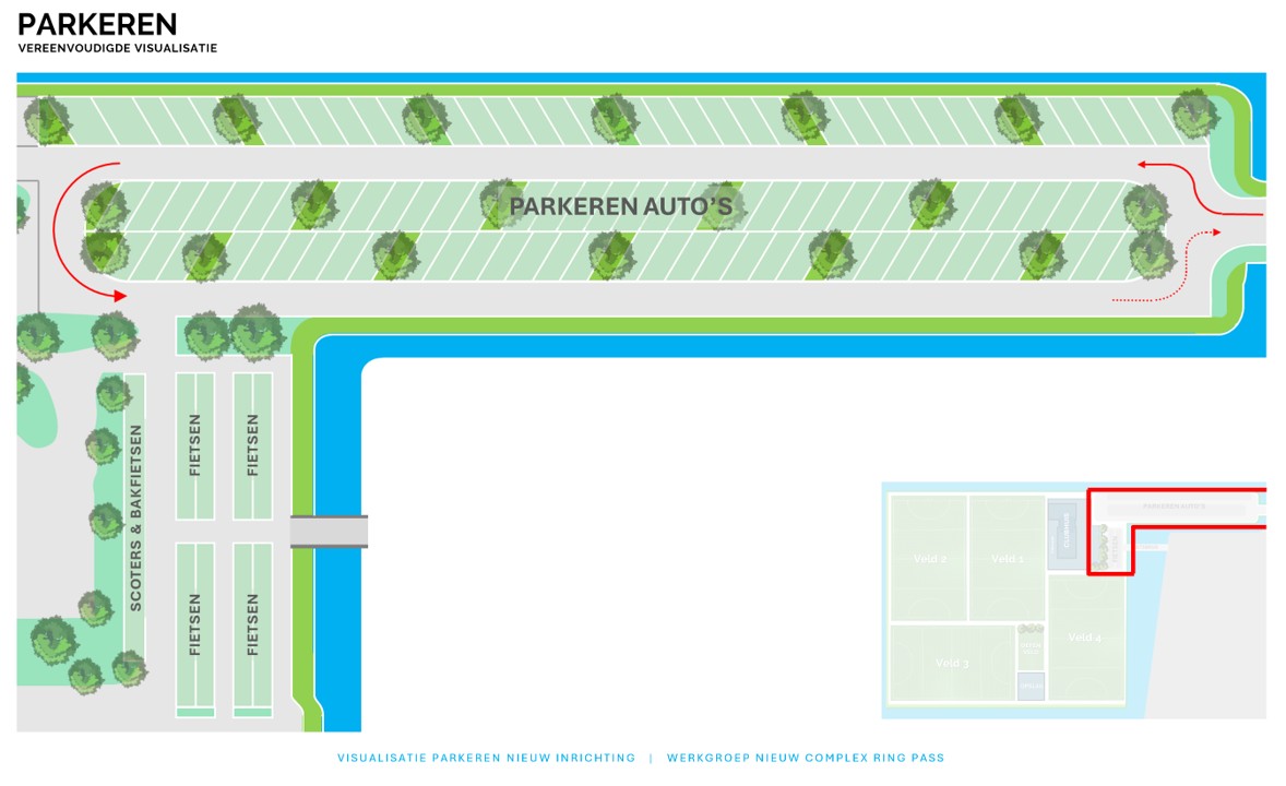 We zijn in de afgelopen artikelen al enige tijd buiten. We hebben het over het nieuwe clubhuis als entree tot het terrein gehad. We hebben langs de velden gewandeld. En we hebben de blaashallen bekeken. Laten we het nu eens hebben over die andere grote ingreep: hoe komen we straks aan? Ofwel, tijd voor hoe het nieuwe parkeren eruit gaat zien!